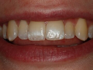 Grote witte vlekken op de vier voortanden worden verwijderd zonder boren met een Icon behandeling